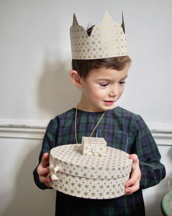 Couronne Noël Céleste en papier lokta artisanal, parfaite pour désigner le roi ou la reine de votre galette. Ses motifs délicats et festifs apportent une touche élégante et poétique à vos célébrations de l’Épiphanie.