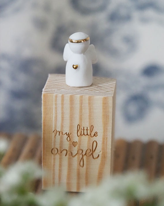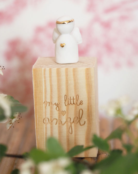 Matières : Boîte en bois avec fermeture magnétique – Ange en porcelaine